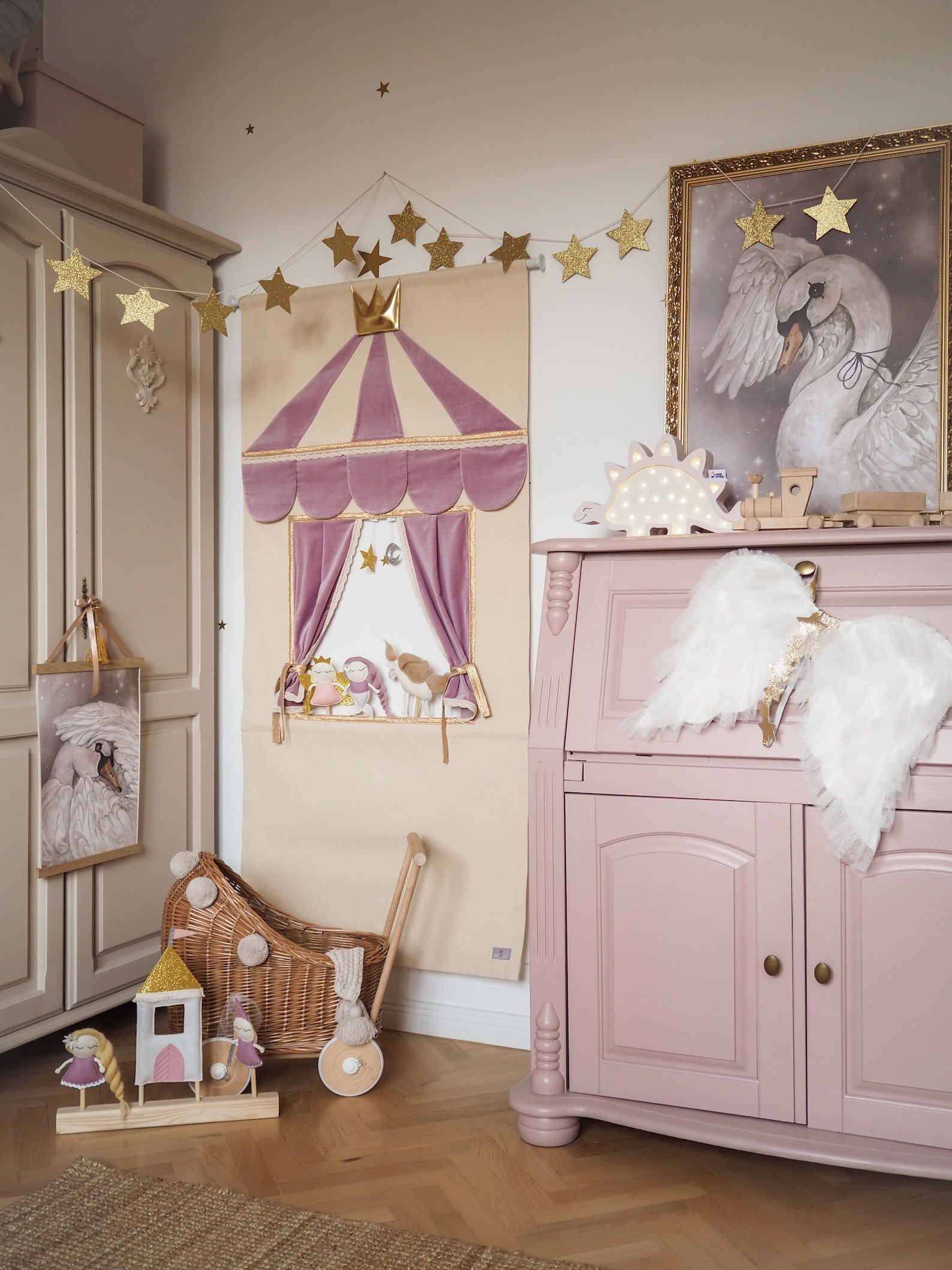 MIMIKI was created with passion and love for kids and nature. We love telling stories and now you can do that with the MIMIKI doorway theatre. It has a handy pocket for all your decorations and puppets. Behind the scene you can hide all your hanging scenography. It is also a great kids room decorations while not used!