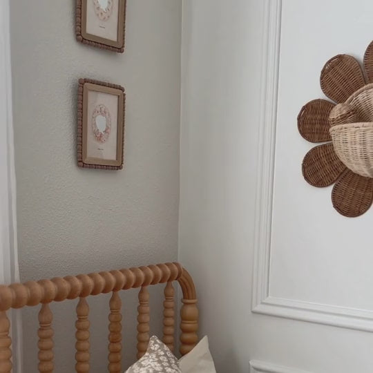 Embrace playful decor with the Rattan Daisy Wall Basket.