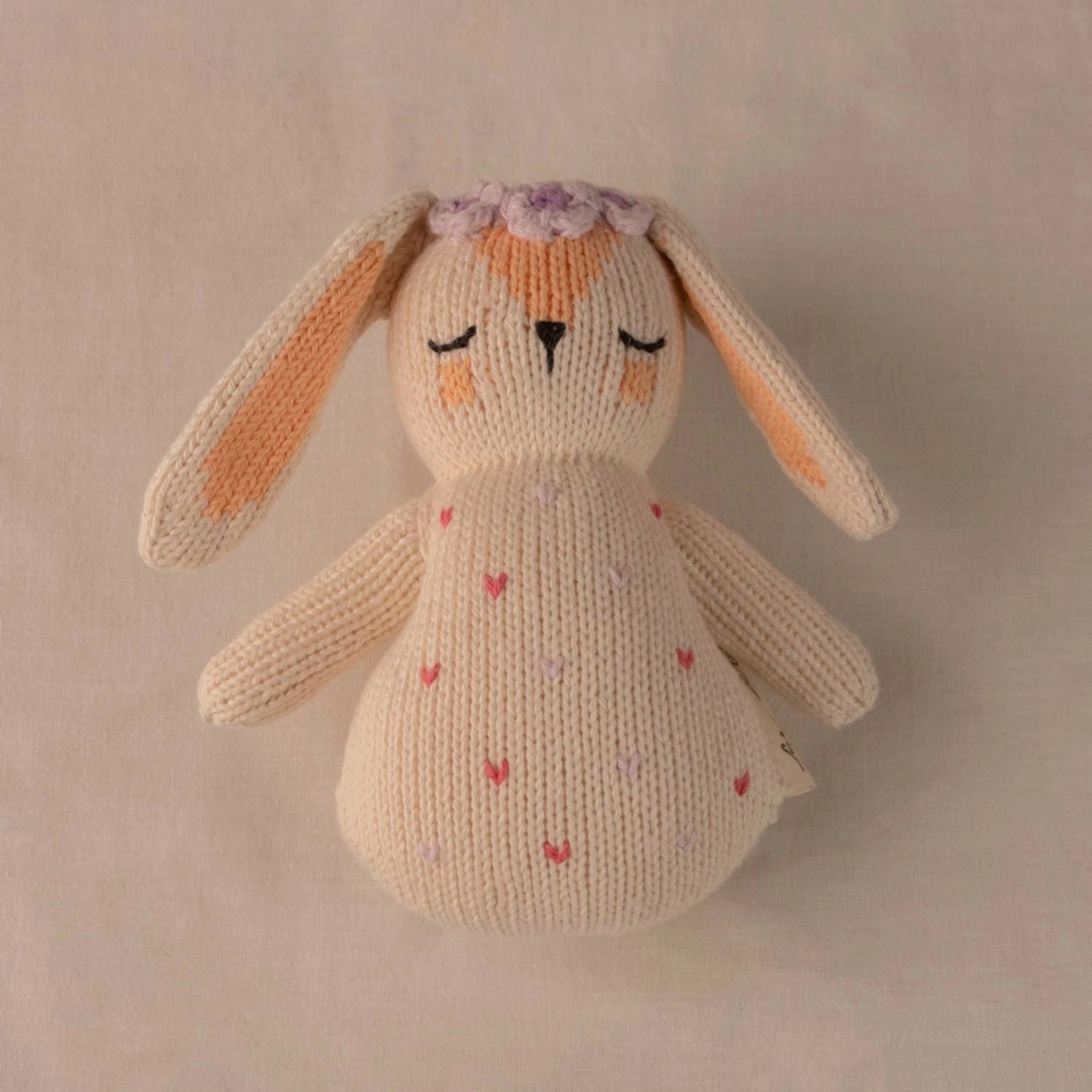 This rounded rattle in a mini version of our three characters: the Nino sheep, the Qori rabbit and the polar bear is easy for babies to handle and makes noise thanks to its bell when it is shaken.