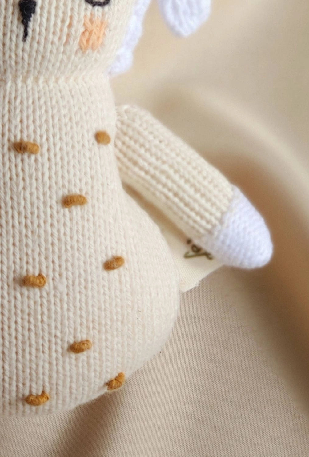 This rounded rattle in a mini version of our three characters: the Nino sheep, the Qori rabbit and the polar bear is easy for babies to handle and makes noise thanks to its bell when it is shaken.