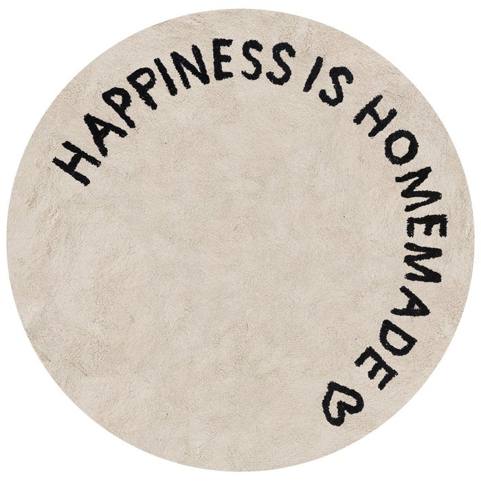 Tufted saying: Happiness is Homemade Soft feel thanks to soft cotton fibers Dimensions: Diameter approx. 140 cm