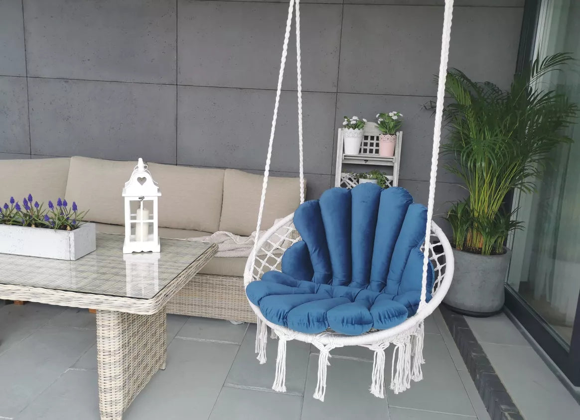 A set of two cushions connected by straps that can be tied and used as a very large cushion seat or as a separate decorative cushion seat.