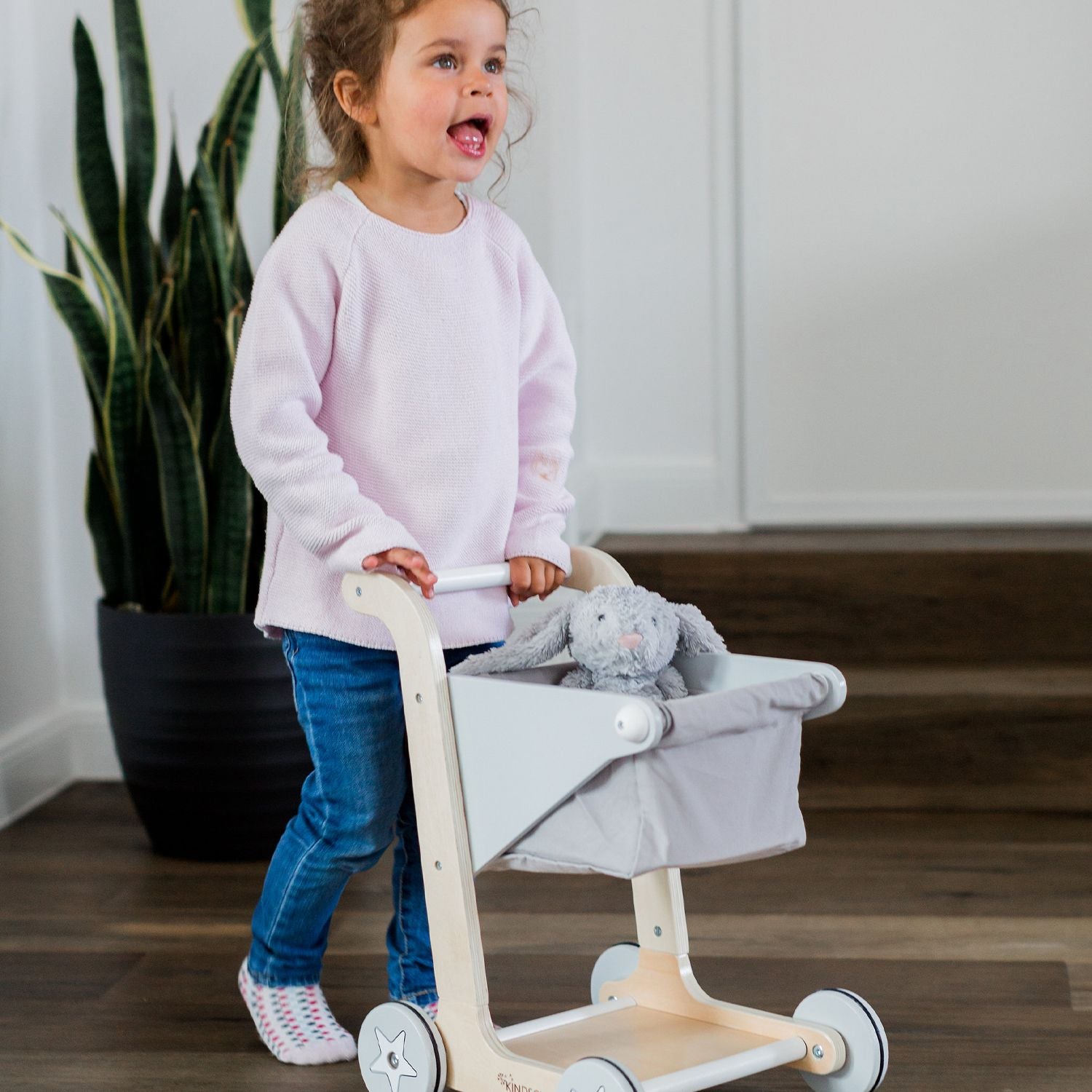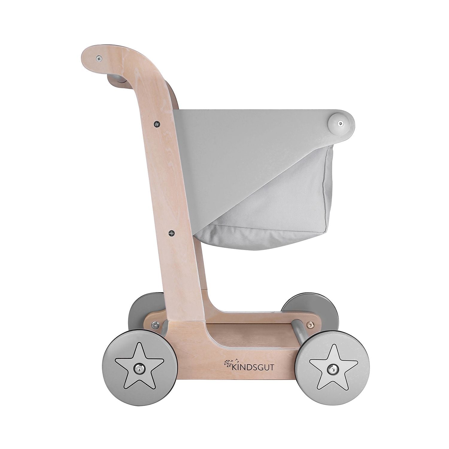 The shopping cart from Kindsgut is not only a great toy, but also an ideal support for children who are just learning to walk. The wooden shopping cart invites you to walk through the whole apartment step by step. Not only purchases from the kitchen, but also shop accessories or favorite toys can be safely transported. The shopping cart thus ensures long-lasting and creative fun. The shopping cart has a reduced unisex design and is therefore equally suitable for girls and boys. The high-quality wood and minimalist appearance fit stylishly into a modern living environment.