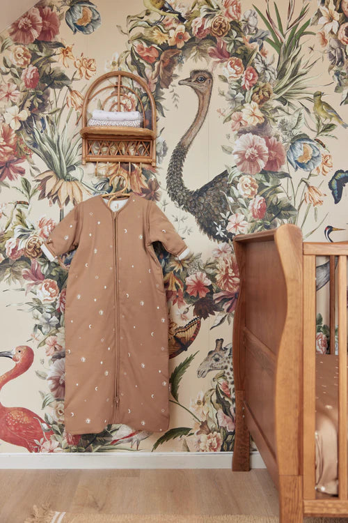 Do you also have a fixed evening ritual with your little one? Reading a book or singing a song together, sleeping bag on a tuck them in comfortably? This nice baby sleeping bag with cool print has removable sleeves. That way, you can transform it from a TOG-value of 3.0 for cold winter days into a TOG value of 2.0 for cool nights in the spring and autumn. A sleeping bag makes your baby feel secure, provides warmth and limits their freedom of movement. And that's a nice thing to have for your active little rascal.