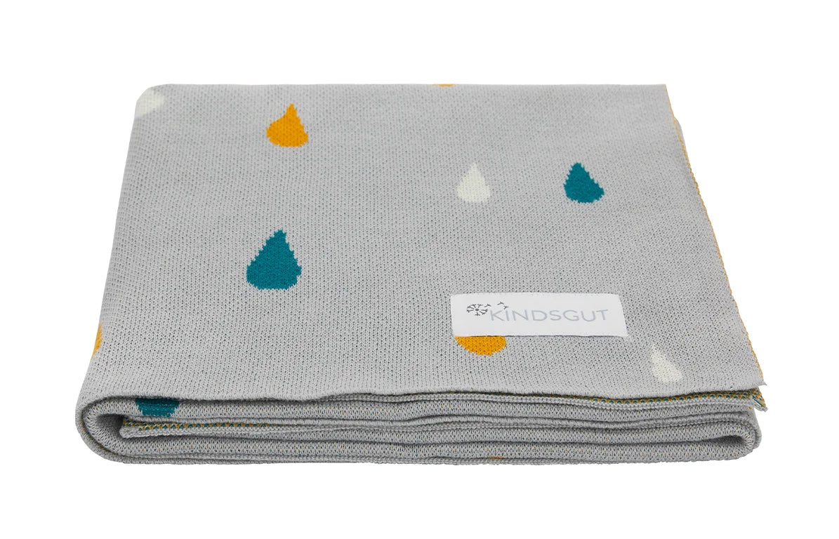 It includes: Kindsgut children's blanket Raindrop, Kindsgut crocheted grasping toy Star and Kindsgut comforter Star.