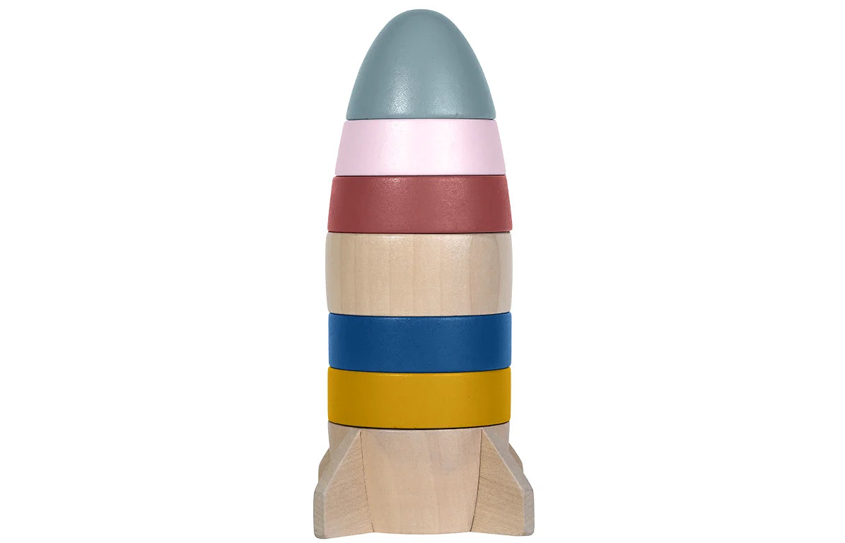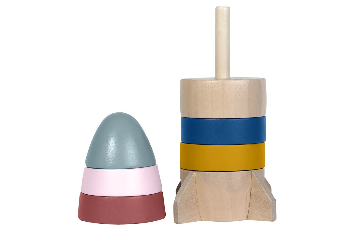 - Great quality : The high-quality stacking game consists of six rings and a "rocket base" and offers long-lasting fun. Environmentally friendly: The plug-in tower is made of environmentally friendly wood, is free of harmful substances and is processed in a way that is child-friendly.