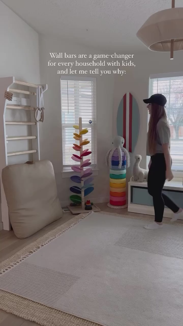 The wall bars become even more versatile in combination with the ULPU MINI gymnastics rings. Kids love hanging, swinging and learning new tricks with them!