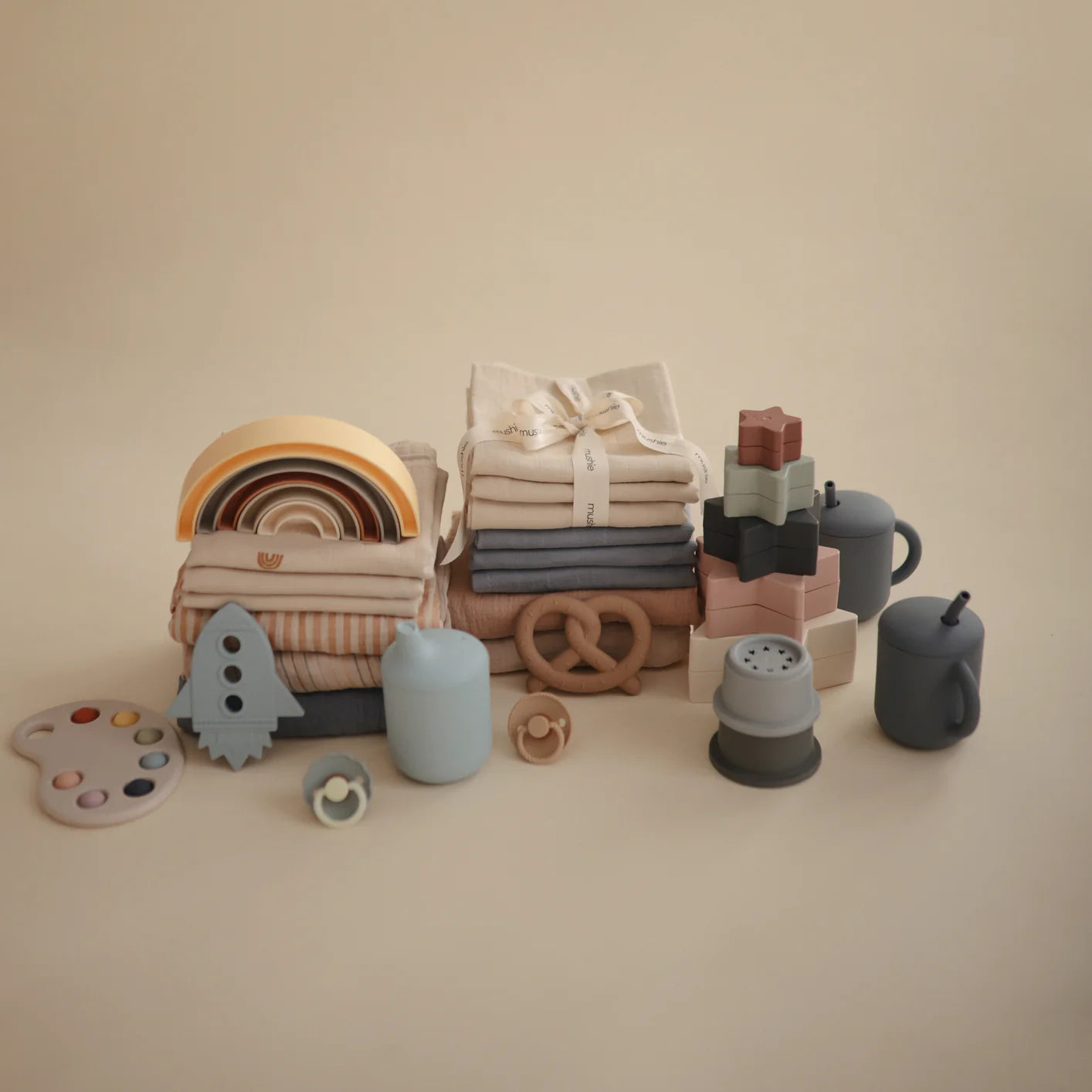 Mushie teethers in various colors and designs!