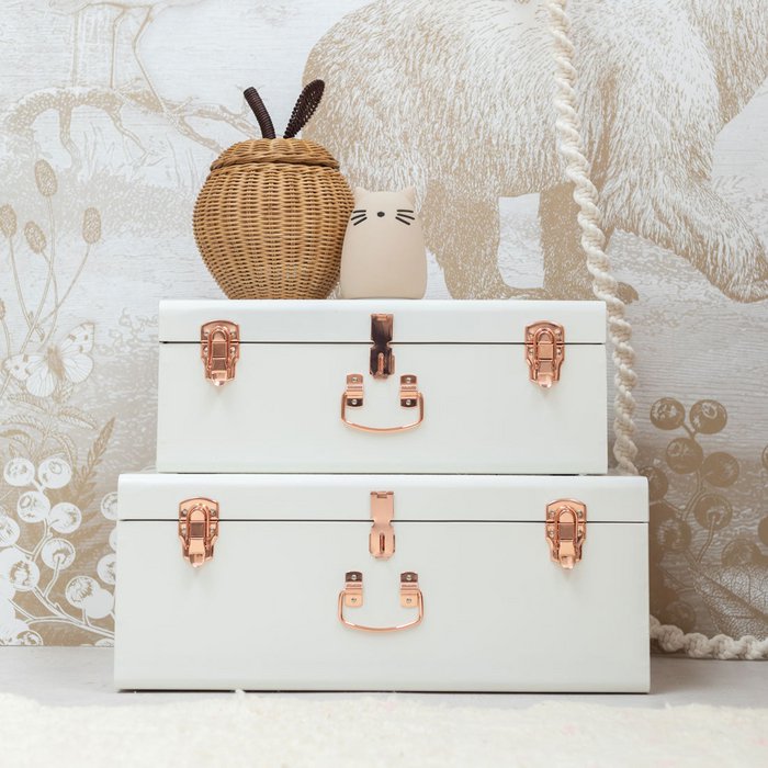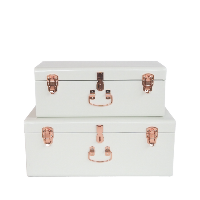 Set of two Trunks in Celestial Blue. Beautiful metal trunks, made of galvanized iron and a powder coated finish. Our cases are finished by hand and thus retain the characteristic look that you can expect from these cases.