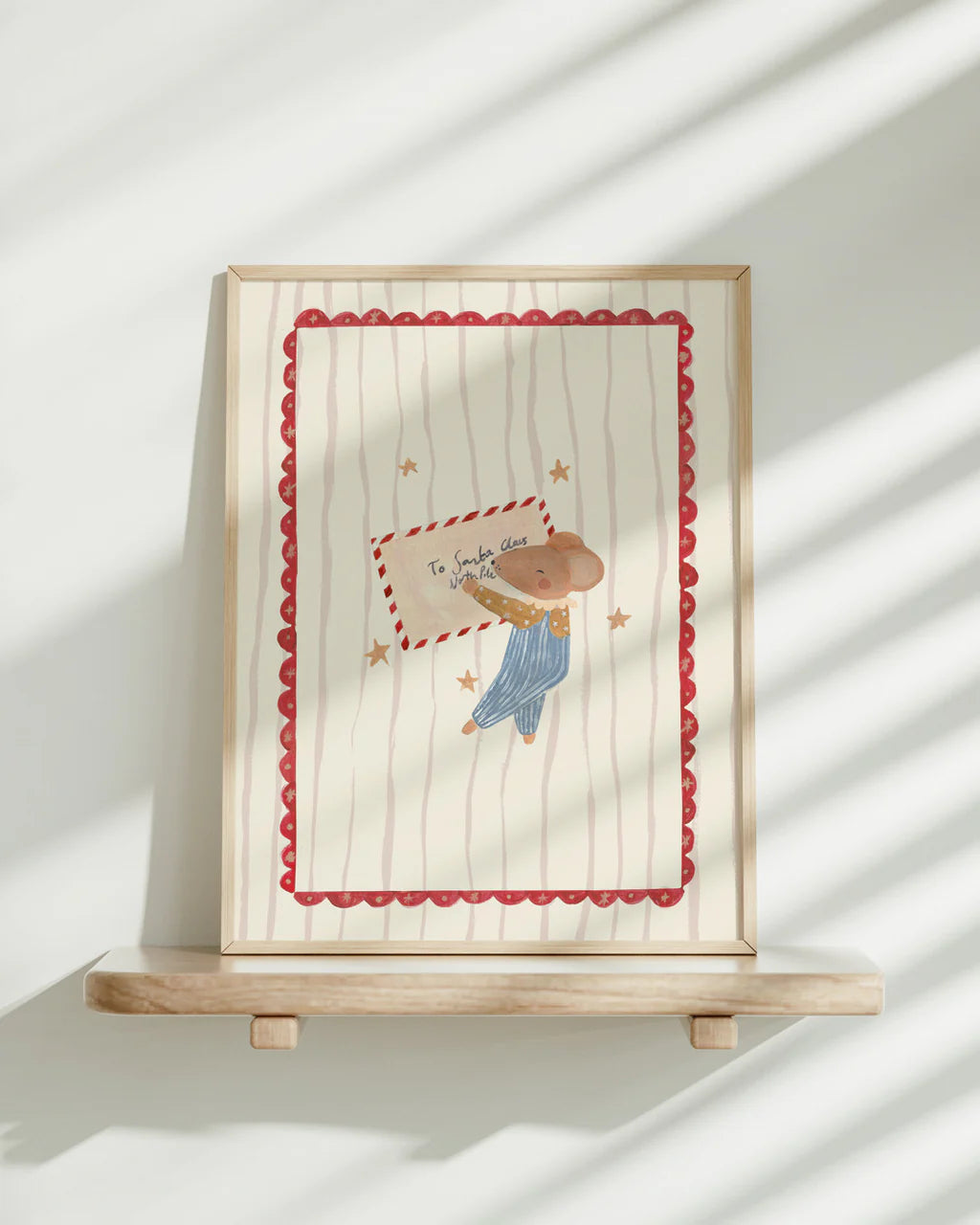 Hand-Painted Mouse Print carrying his letter for Santa.
