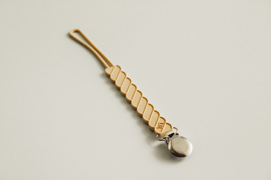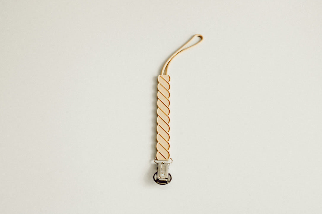Twist Silicone Modern Pacifier Clip in Tan