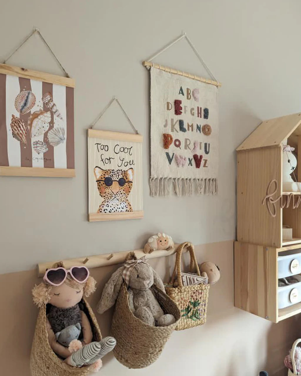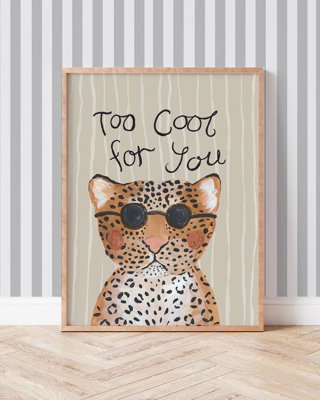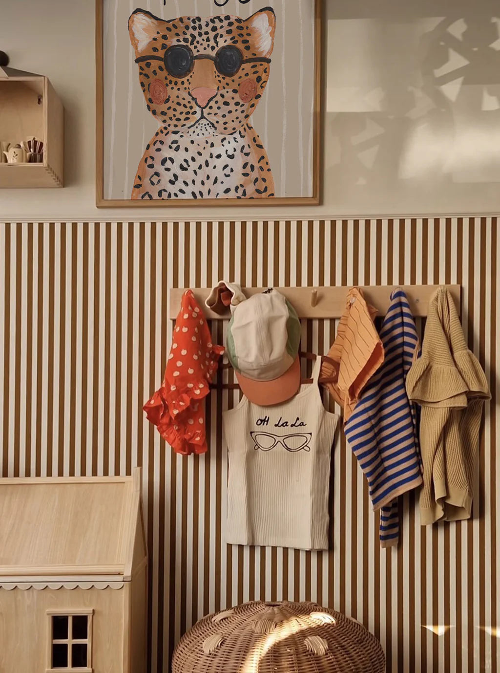 This little guy is part of our Wild Things collection. Painted in Acrylic paint onto a stripey neutral background.