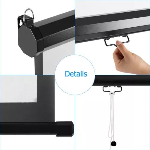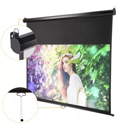The UpLiving manual pull down projection screen is the perfect choice for a high quality and wide viewing surface for a projector. The lightweight and portable design makes it easy to use. Simply pull the pull ring and a projection screen is available. The matte white viewing surface has an automatic locking mechanism that unfolds within seconds. The black cover edge ensures optimal image sharpness and alignment.