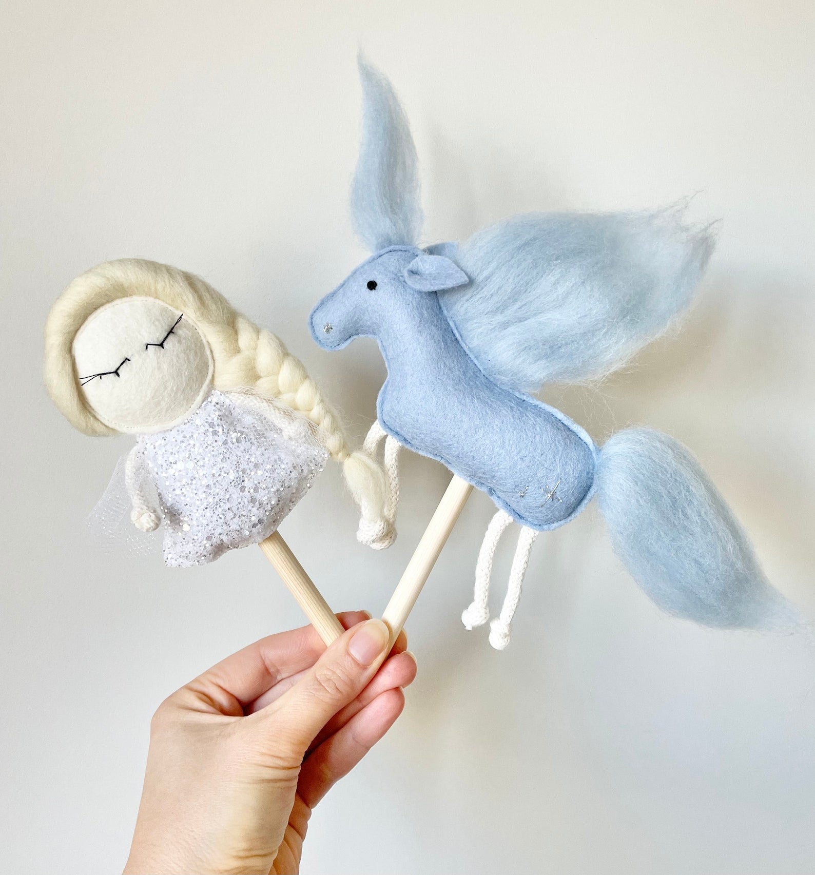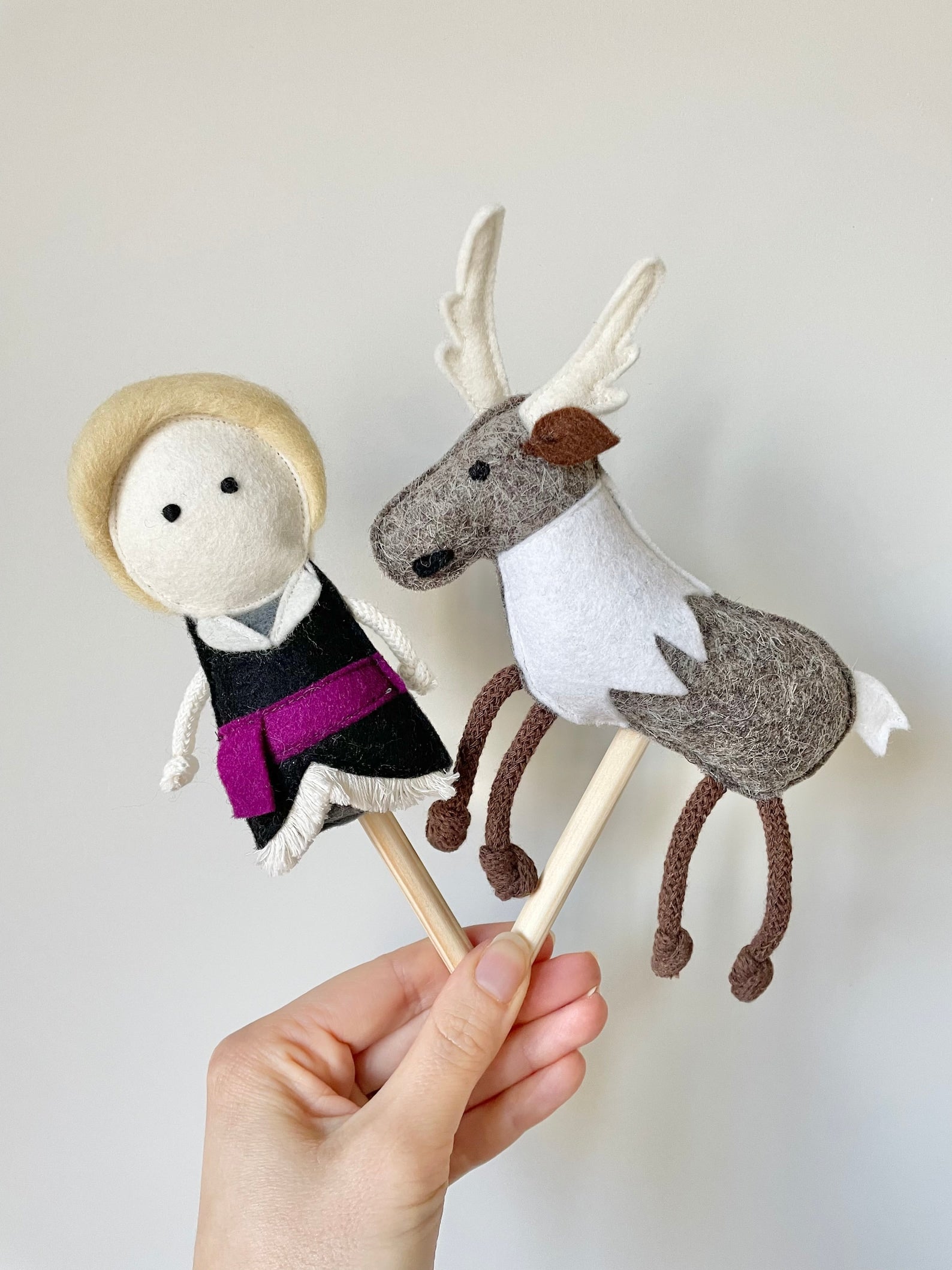 They are all hand cut and made from soft wool felt and wool, no glue, no laser used for cutting. With love and attention to details. You and your kids can play with them easily as they are on wooden sticks.