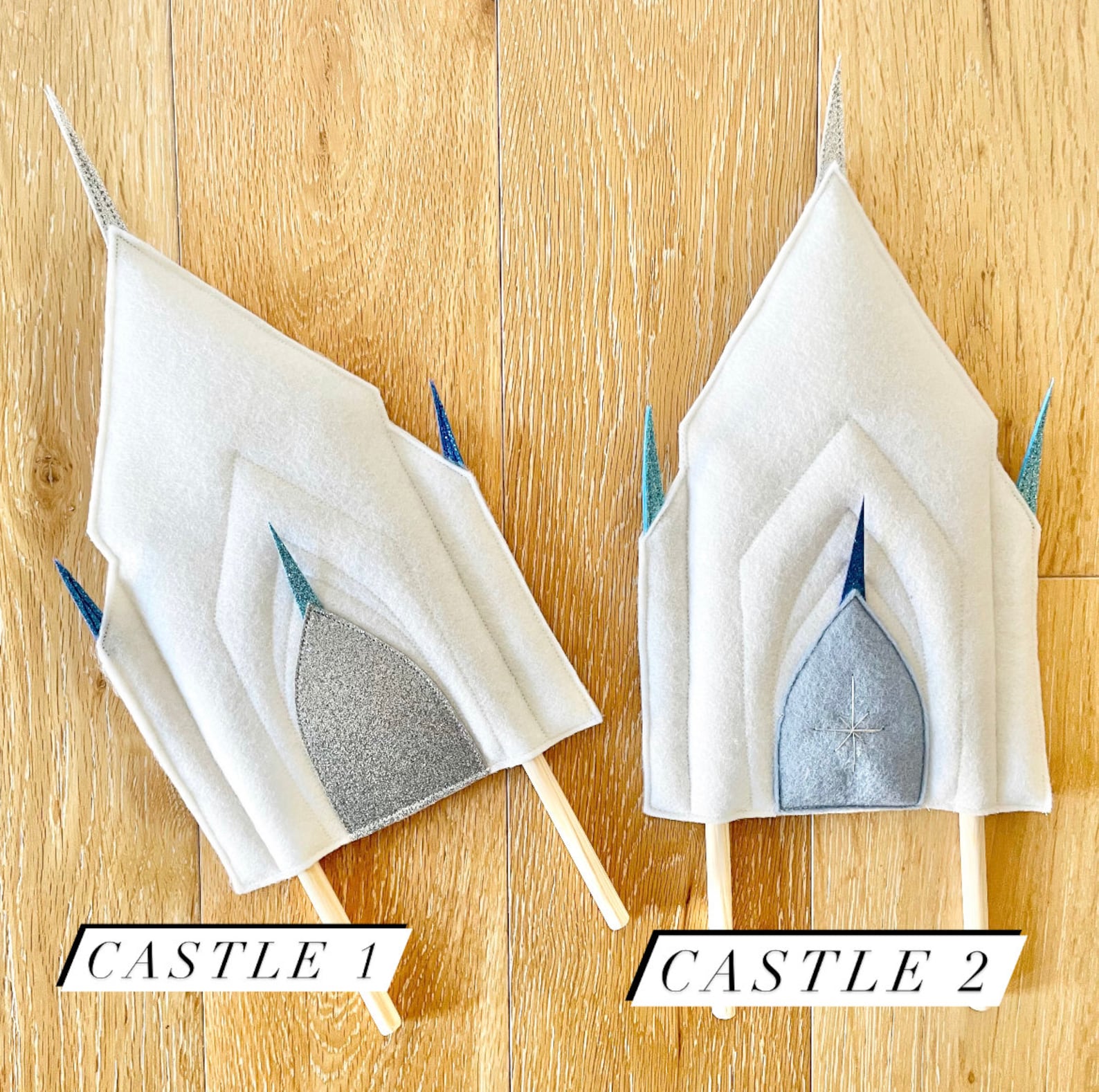 Single castle: white castle with silver glitter door or white castle with blue door and star embroidery