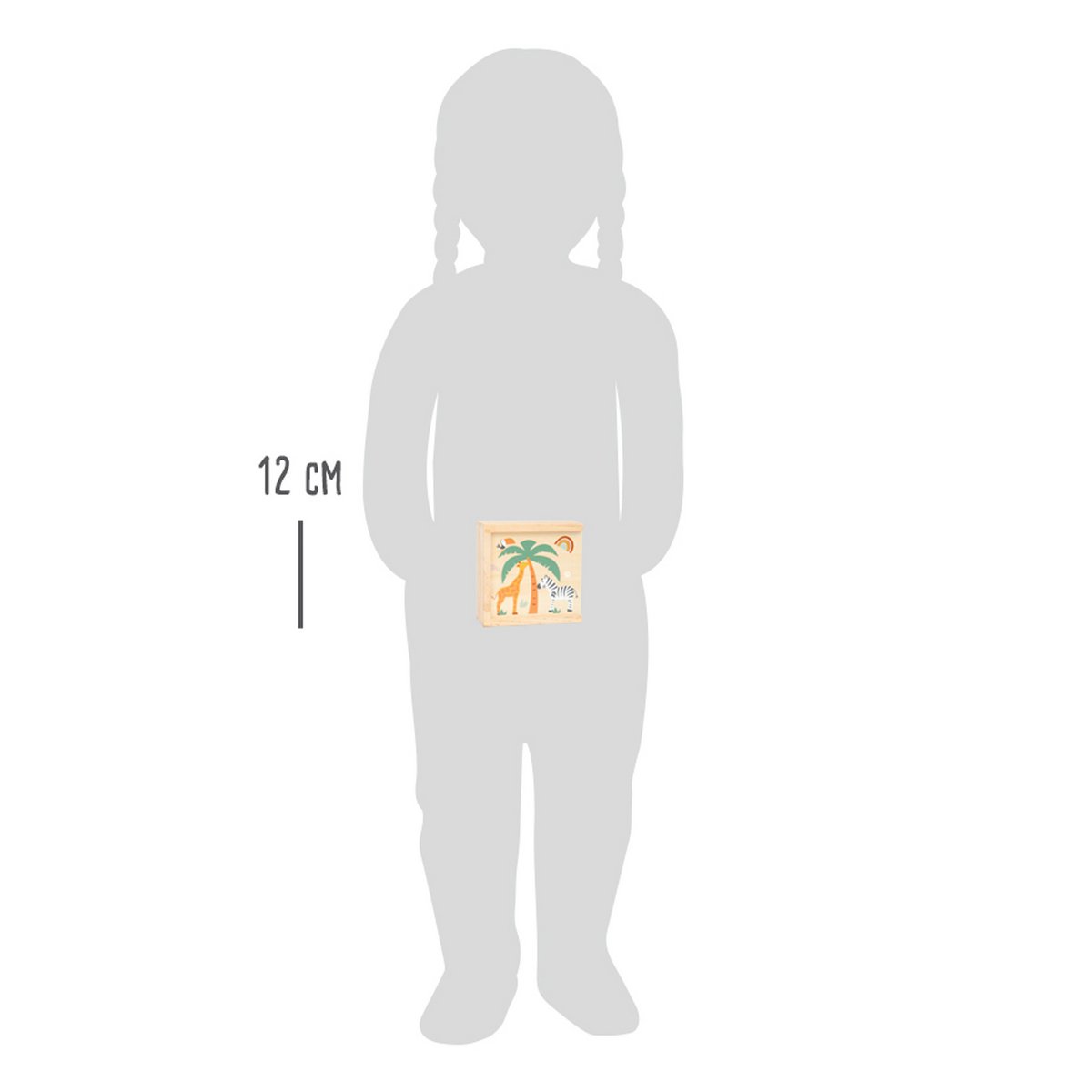The child-friendly wooden panels show cute safari motifs in trendy colors so that children can immerse themselves step by step in the adventurous world of wild animals.