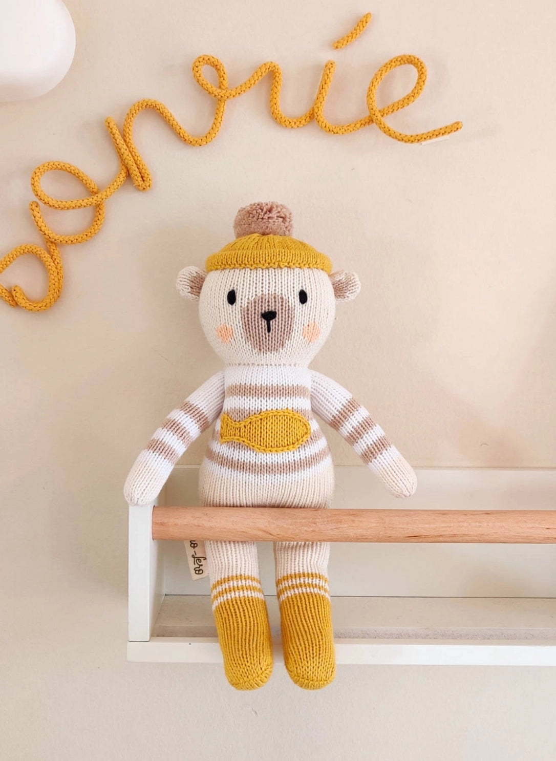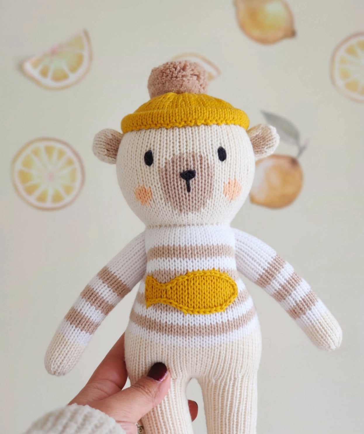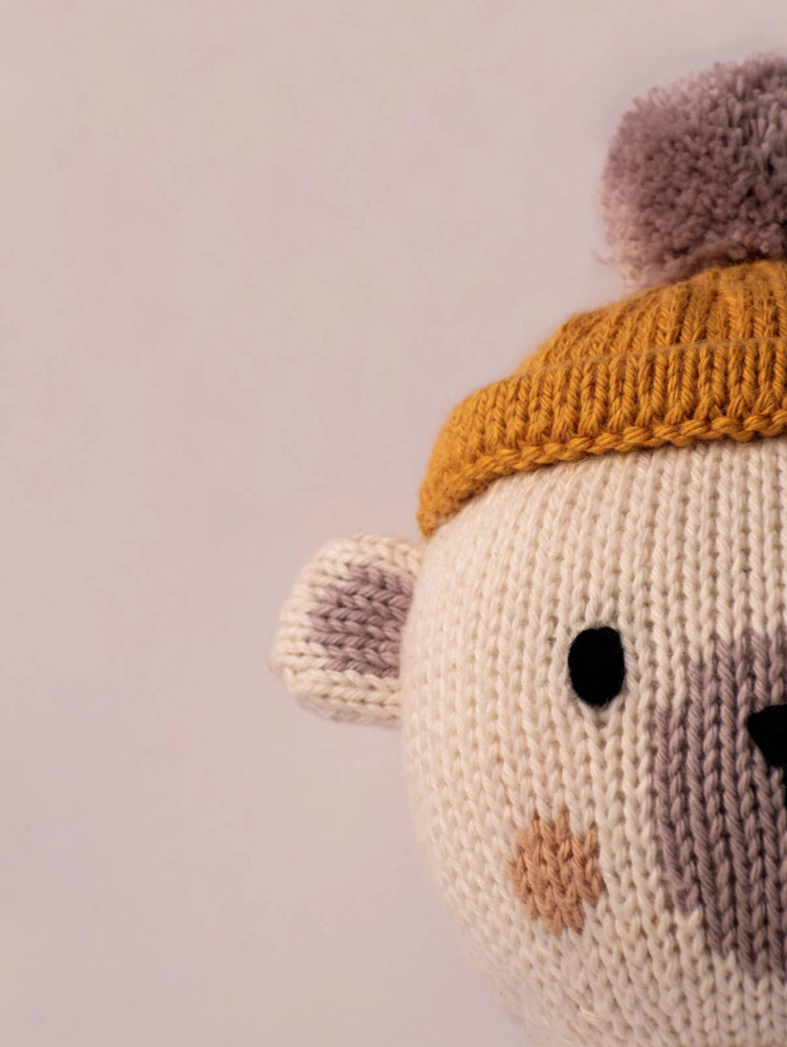 Its simple face conveys a light expression that stimulates imagination and creative play. It is handmade by knitters from Peru in a safe, family-friendly work environment.